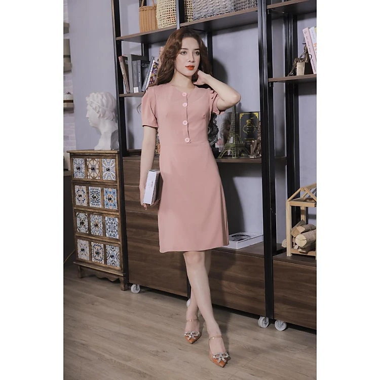 Váy Màu Nâu Cúc Trước Thanh Lịch 23V006 Cao Cấp Pi Style