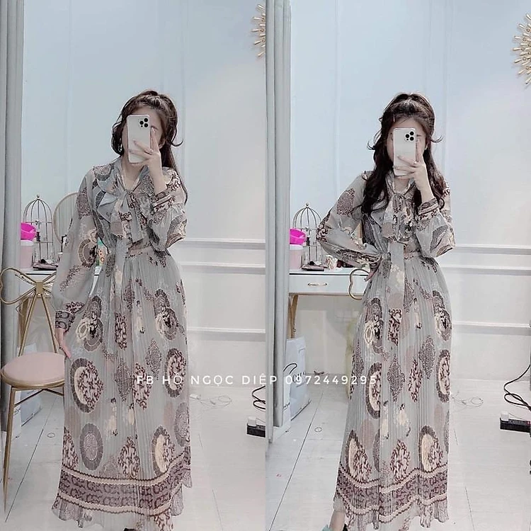 - Váy chất lụa cát xịn xò màu ghi cực tây
