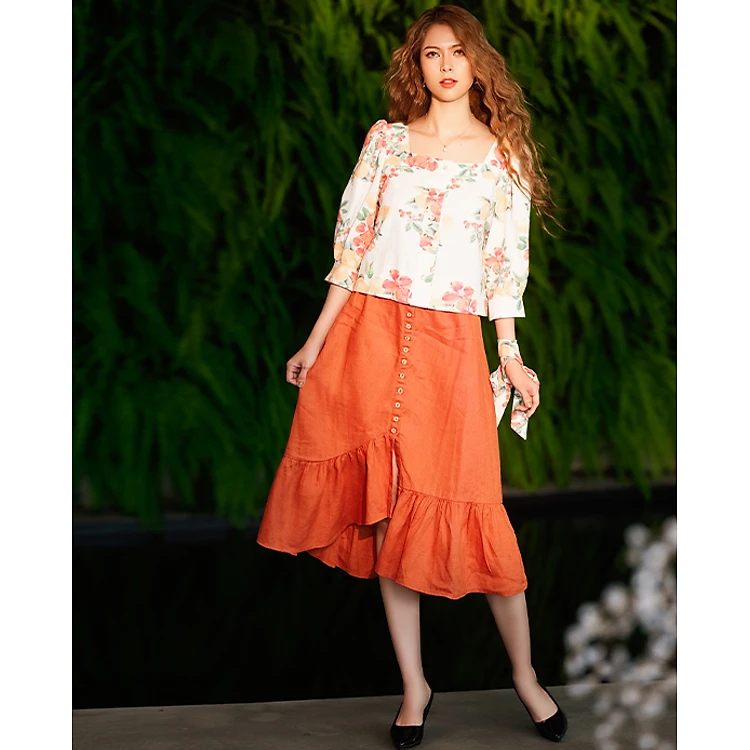 Váy Midi Linen Amsterdam, Váy Dài Qua Gối Linen Cam Gạch SKI034 Thời trang thiết kế Hity
