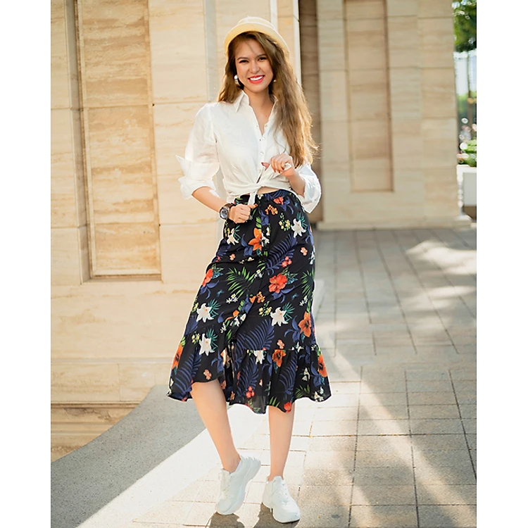 Váy Midi Xoè Lily, Váy Dài Qua Gối Hoa SKI034 Thời trang thiết kế Hity