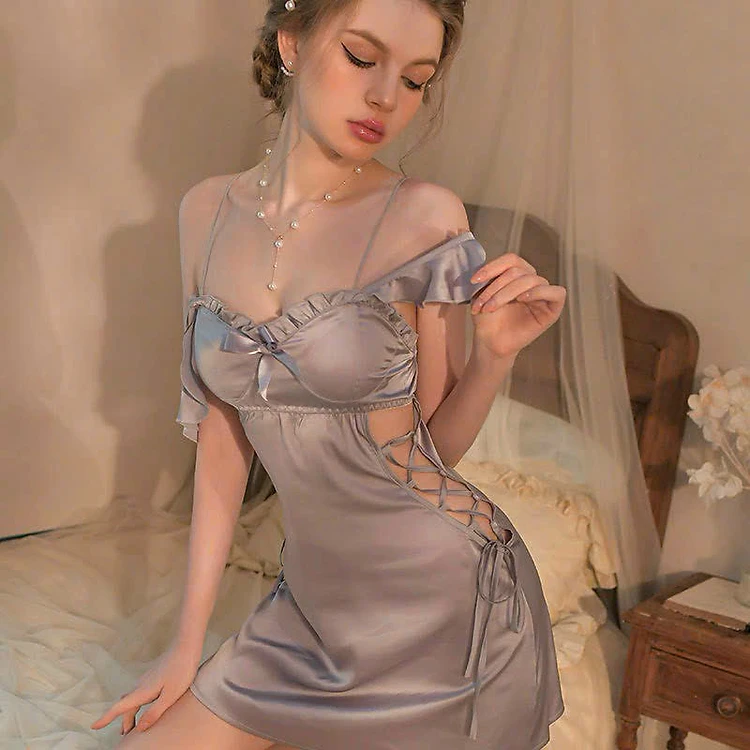 Váy Ngủ 1996 Lụa Quảng Châu Cao Cấp Đính Nơ Khoét Eo Xinh Xắn