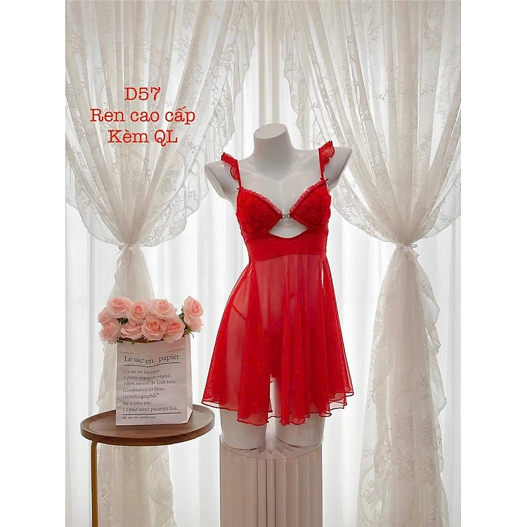 Váy Ngủ D57 Ren Lưới Xuyên Thấu Có Gọng Có Mút Kèm Chip Xinh Xắn