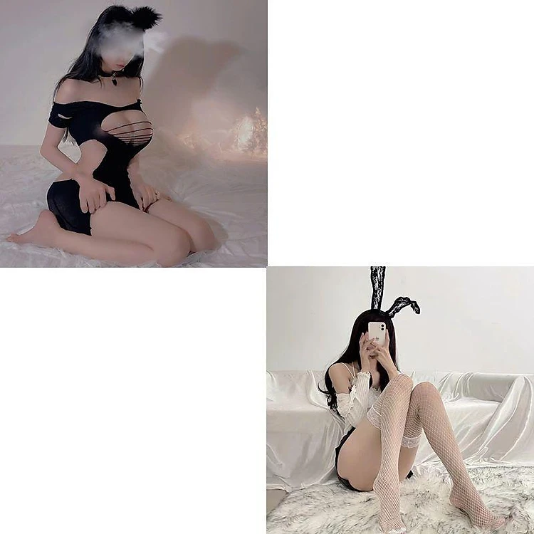 Váy ngủ đam mê, vớ đen, gợi cảm, váy bó mông, cặp vợ chồng tán tỉnh, váy ngắn chạm rỗng, váy liền thân.