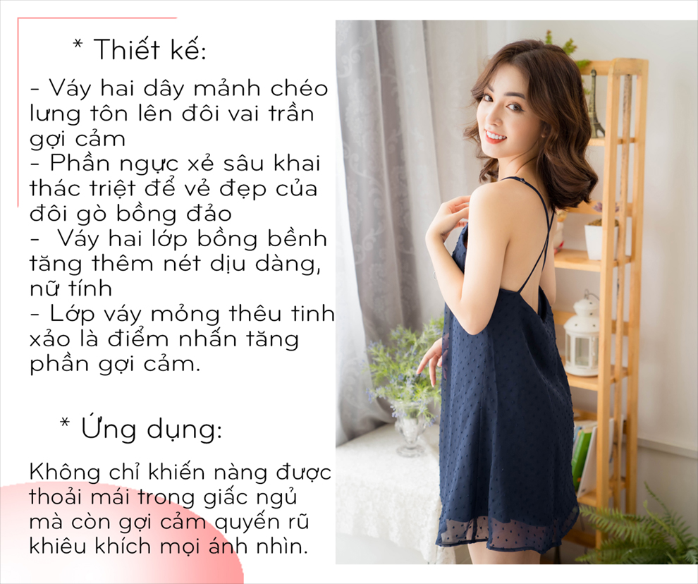 Váy ngủ lụa cao cấp dây đan chéo lưng gợi cảm N206