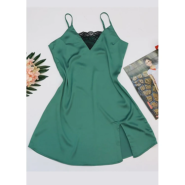 Váy ngủ lụa hai dây cao cấp phối ren ngực xanh đỏ vàng hồng Vingo N186