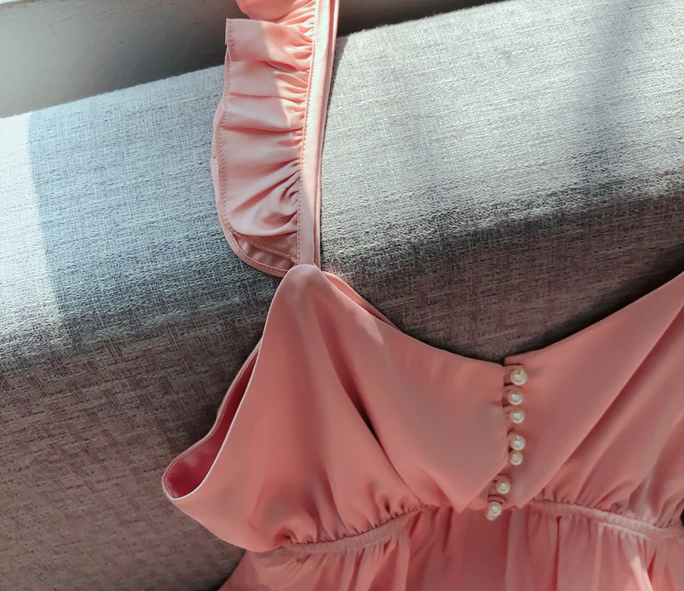 Váy ngủ lụa satin cao cấp dáng xòe cúc ngọc tay bèo gợi cảm N212
