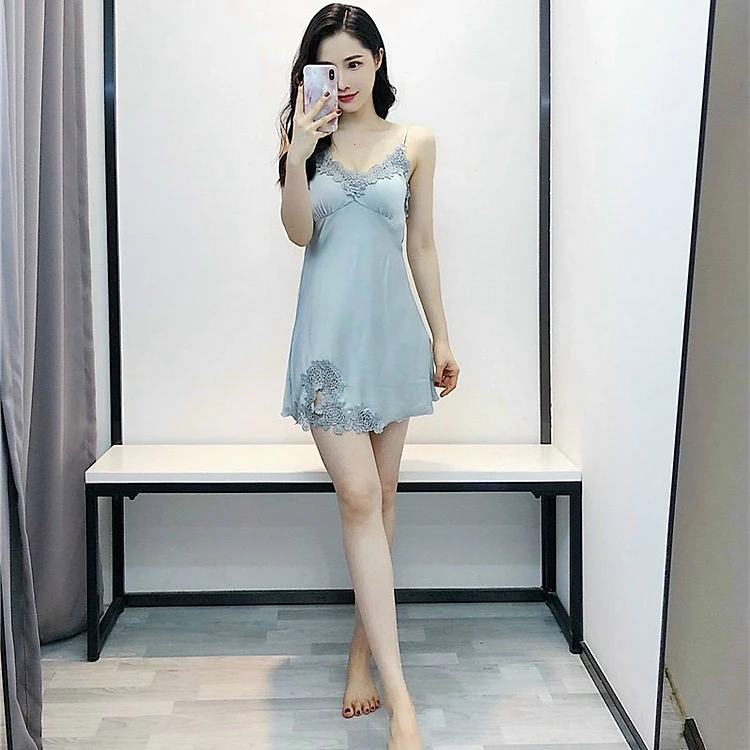 Váy Ngủ Lụa Satin, Váy Ngủ Thêu Ren Phong Cách Đơn Giản Kiểu Dáng Sang Trọng 7632