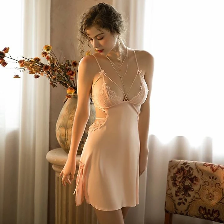 + Mô tả: Váy được thiết kế hai dây phối hai màu, ngực ren dây đan bầu ngực tạo cảm giác vòng 1 phái đẹp thêm căng tròn, hông váy khoét kết hợp hở lưng cực sexy. Váy ngủ lụa mang đậm nét phong cách Hàn Quốc dành riêng cho bạn nữ, tạo điểm nhấn lạ mắt, cho bạn thêm quyến rũ, đáng yêu. Kiểu dáng mới lạ và ấn tượng giúp chị em trở nên hấp dẫn, ngọt ngào hơn trong mắt đấng mày râu.