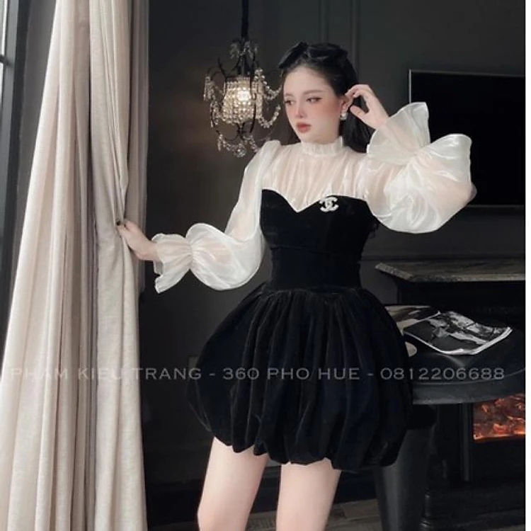Váy Nhung Phồng Tay Tơ Kèm Tang Tiểu Thư Siêu Xinh