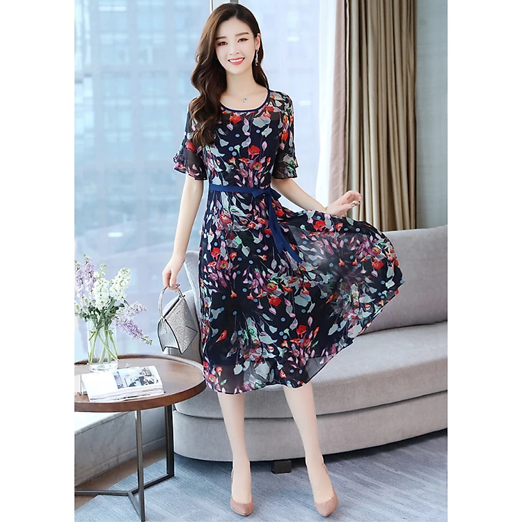 Váy nữ dự tiệc hoa tím sang trọng New4all kiểu Hàn Quốc hè 2019Váy nữ dự tiệc hoa tím sang trọng New4all kiểu Hàn Quốc hè 2019