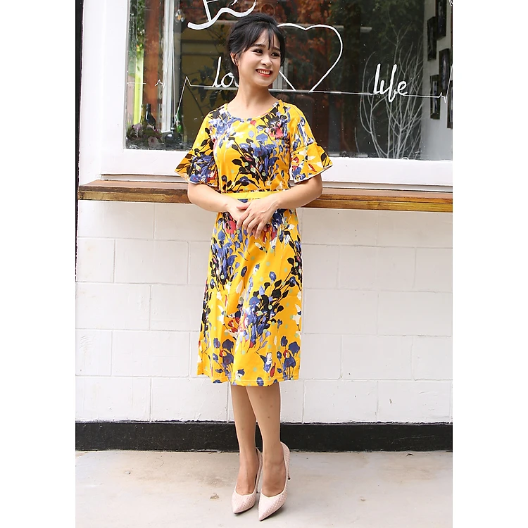 Váy nữ dự tiệc hoa vàng sang trọng New4all kiểu Hàn Quốc hè 2019