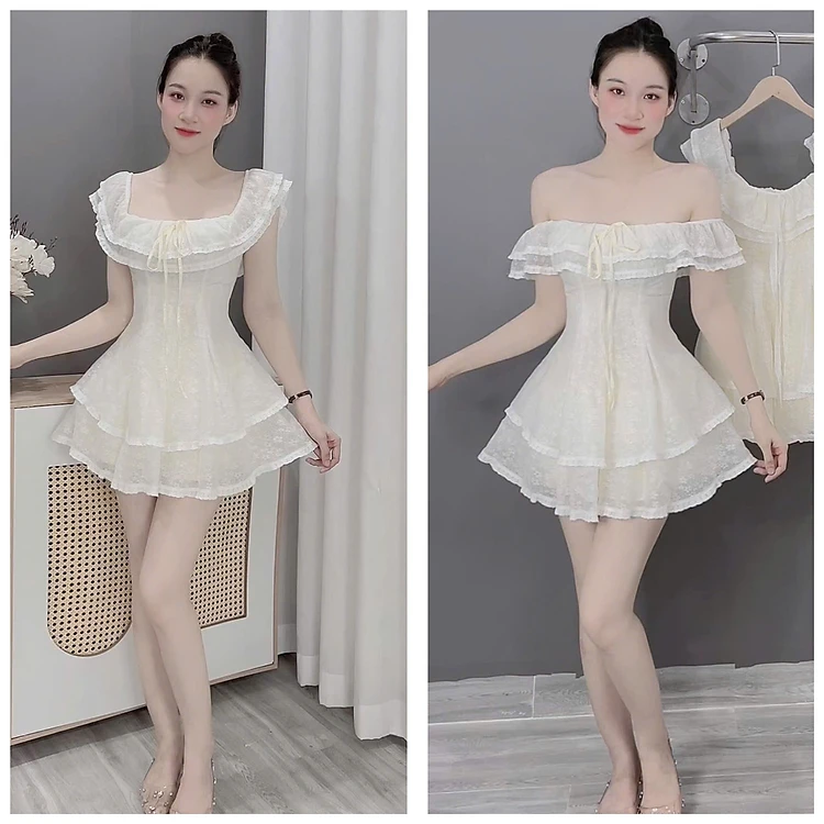 Váy thiết kế tiểu thư ren tầng cao cấp mang 2 kiểu