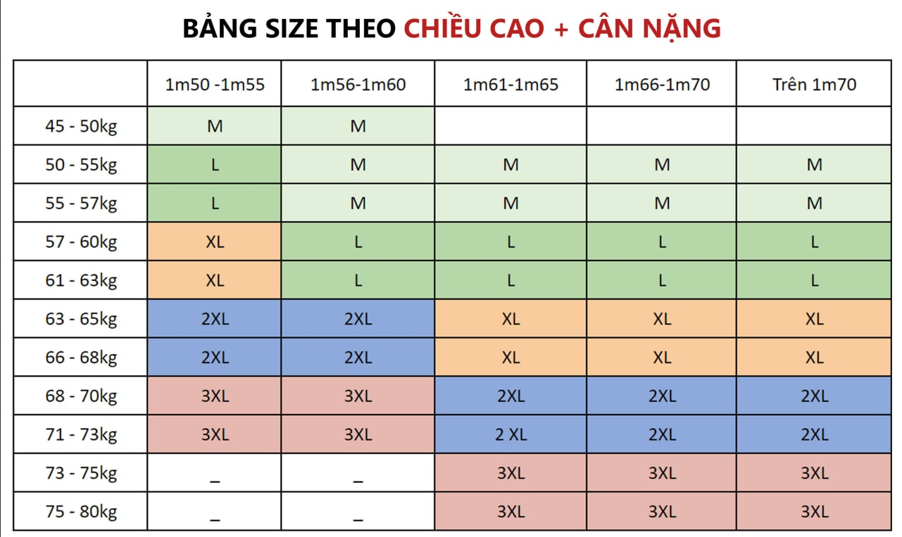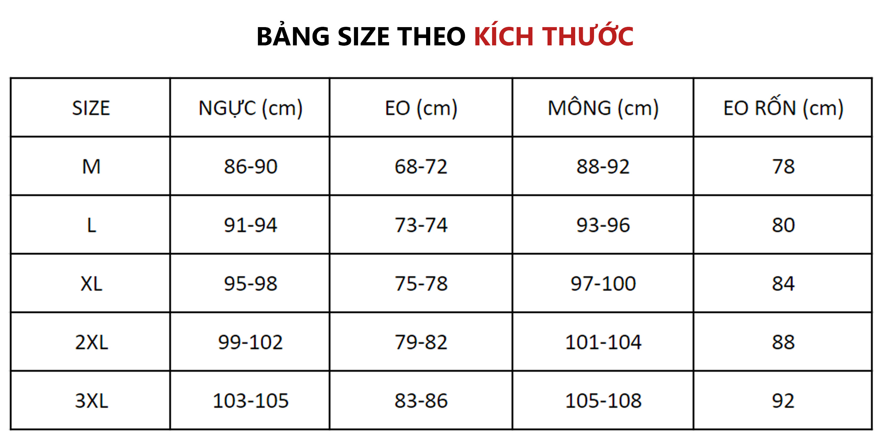 Ngoài bảng size theo chiều cao cân nặng, shop có bổ sung thêm bảng size theo kích thước các vòng để quý khách dễ dàng lựa chọn được size vừa vặn