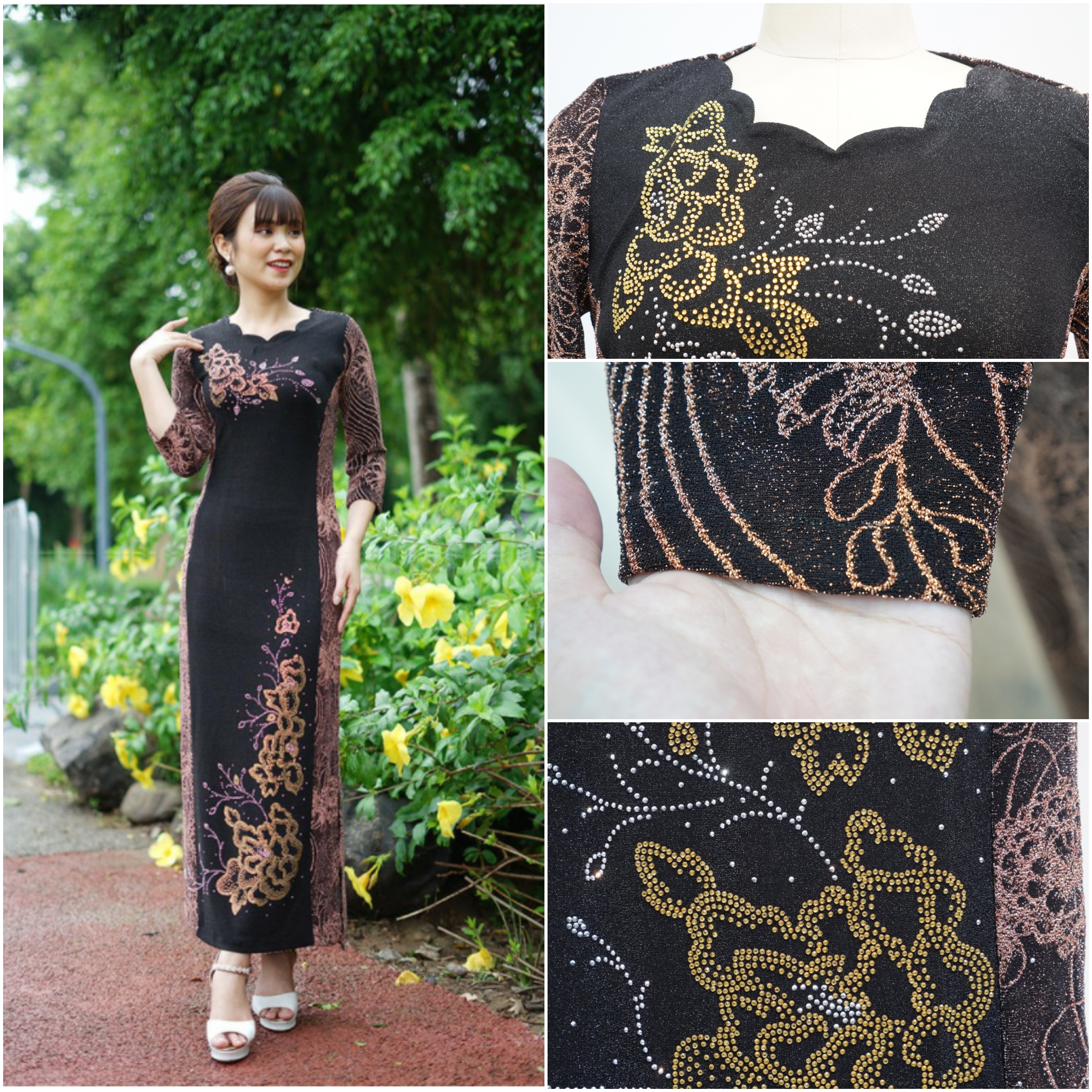 • Đầm lỡ tay chất thun kim sa ánh nhũ siêu sang trọng quý phái cho quý bà tuổi trung niên