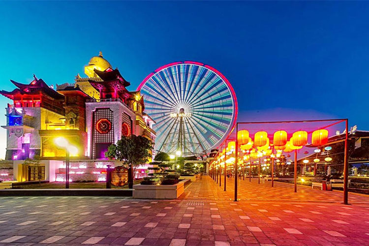 Khu Sun Wheel là một khu vực đầy độc đáo thú vị. Tại đây bạn sẽ được chiêm ngưỡng những công trình đại diện tiêu biểu cho các quốc gia trong khu vực, điển hình như: