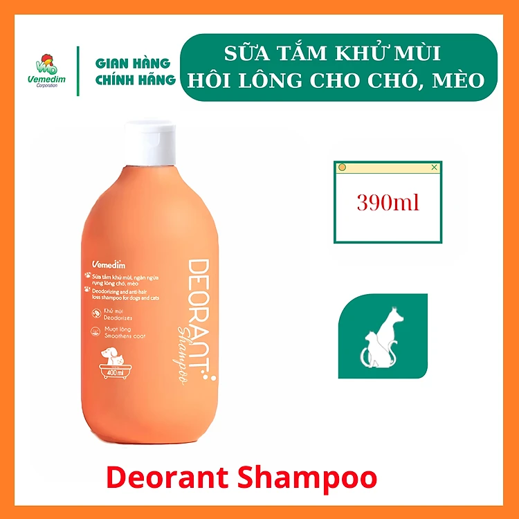 Vemedim Deorant Shampoo sữa tắm khử mùi hôi lông và giúp mượt lông cho chó, mèo, chai 390ml