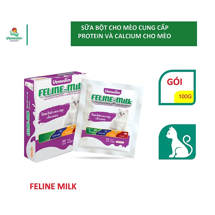 Vemedim Feline milk sữa bột dành cho mèo con, mèo lớn, mèo đang mang thai và dưỡng bệnh, gói 100g