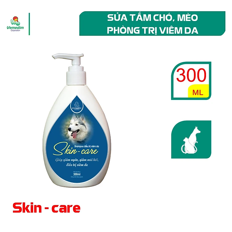 Vemedim Skin care sữa tắm chó mèo giúp giảm ngứa, giảm mùi hôi, phòng viêm da, da sần sùi, chai 120ml/chai 300ml