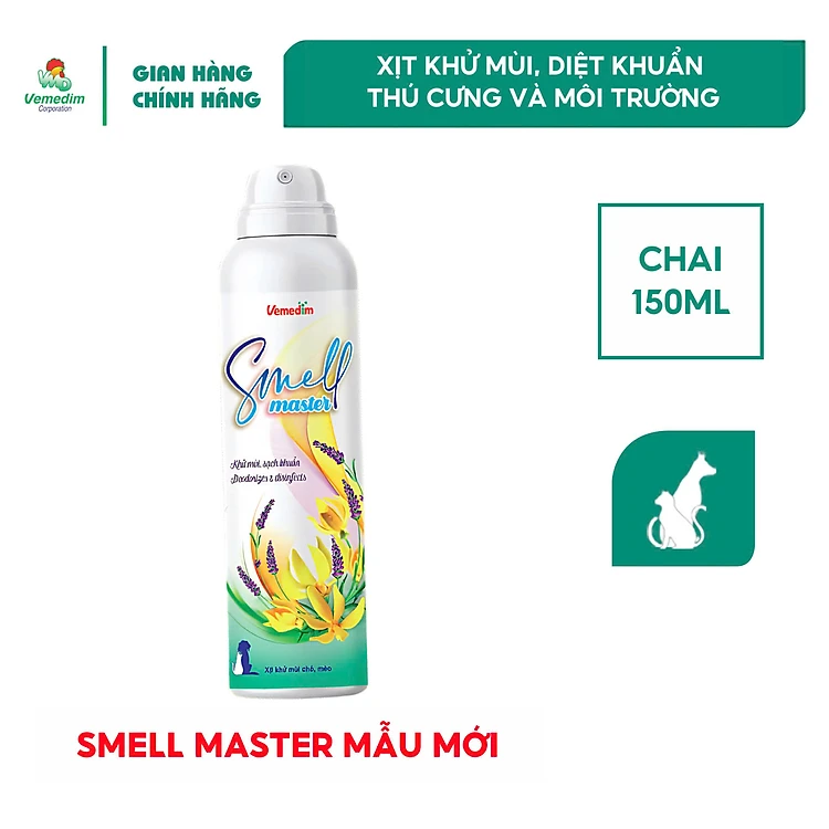 Vemedim Smell Master Khử mùi diệt khuẩn 99.9% trên da, lông chó mèo, chai 150ml