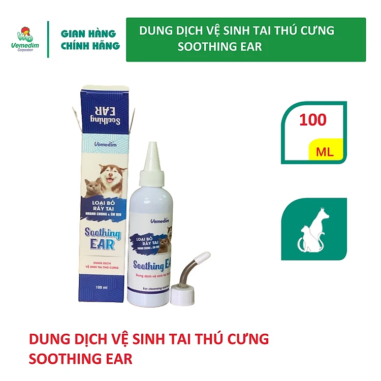 Vemedim Soothing EAR - Dung dịch vệ sinh tai thú cưng, chai 100ml