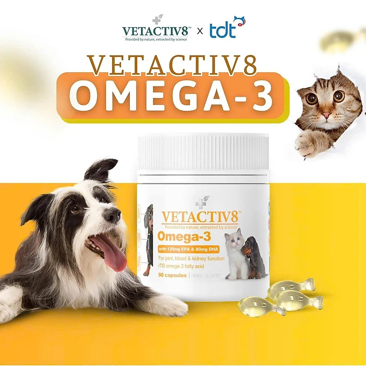 VETACTIV8 Omega-3 Dầu cá tinh khiết dành cho Chó Mèo hỗ trợ tim mạch, não bộ,mô thận và da,lông,móng