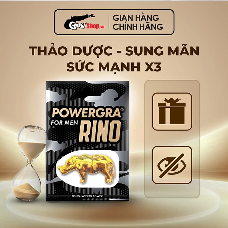 Viên uống phục hồi và tăng cường sức khỏe sinh lý nam giới Powergra Rino - Vỉ dùng thử 1 viên