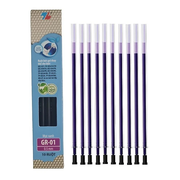 Vỉ 10 ruột bút gel nước Thiên Long GR-01 / GR01 ngòi 0.5mm thay cho các loại bút gel dạng đậy nắp