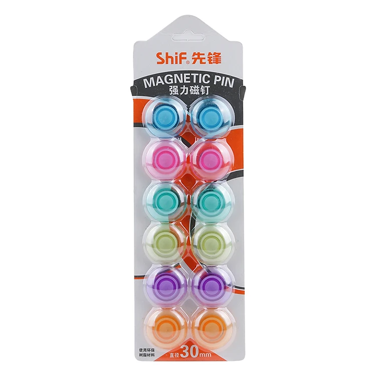 - Mỗi nam châm có đường kính 30mm. Mặt nam châm tạo lực hút mạnh, có thể giữ chặt giấy tờ, tài liệu trên bảng trong thời gian dài mà không cần đến các vật dụng khác như băng dính, keo dán, hạn chế làm bẩn, trầy xước bảng.