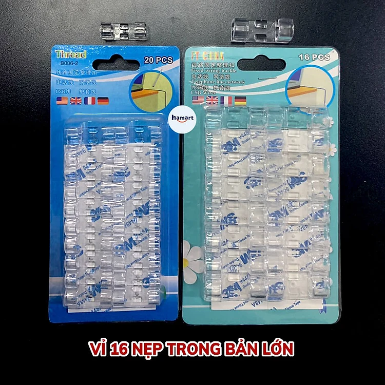 Vỉ 16 Nẹp Dây Điện LỚN Dán Tường Móc Treo Kẹp Cố Định Dây Cáp Lớn (TV, Tủ Lạnh, Máy Giặt...)
