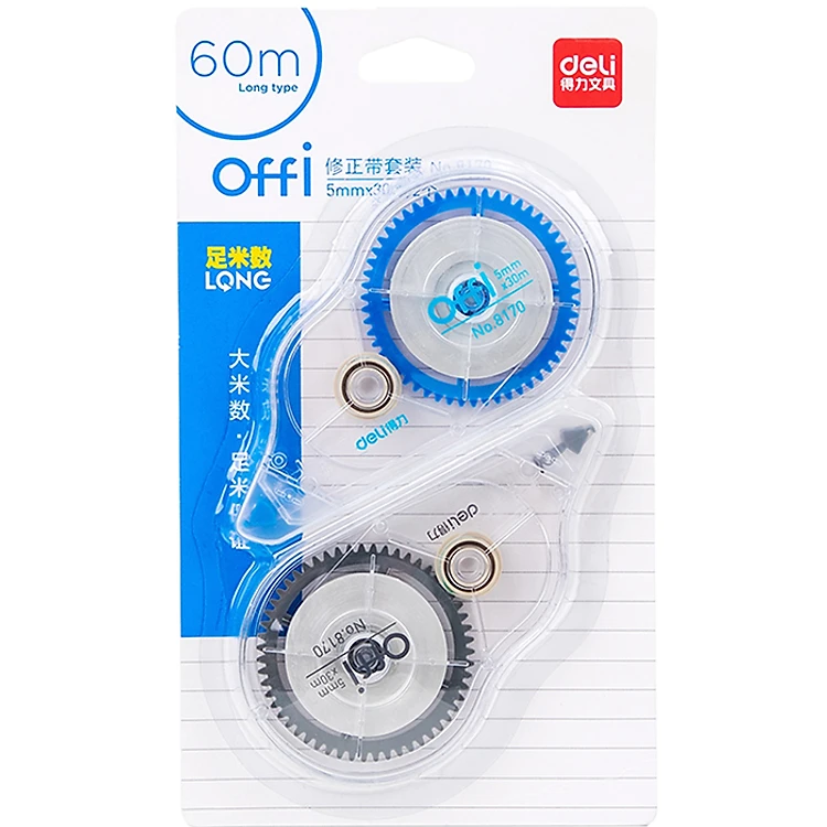 - Vỉ 2 Băng Xóa Deli 8170 với thiết kế thông minh với đầu xóa nằm ngang giúp lực kéo êm, nhẹ nhàng, dễ dàng sử dụng.