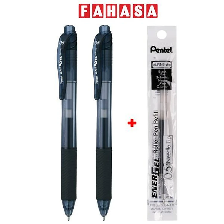 Vỉ 2 Bút Bi Gel EnerGel 0.5 mm Kèm Ruột LR5-A - Pentel VBLN105-A - Mực Đen
