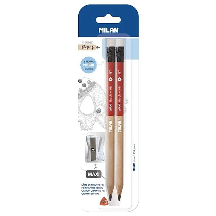 Vỉ 2 Bút Chì Gỗ HB + Đồ Chuốt Milan BWM10427