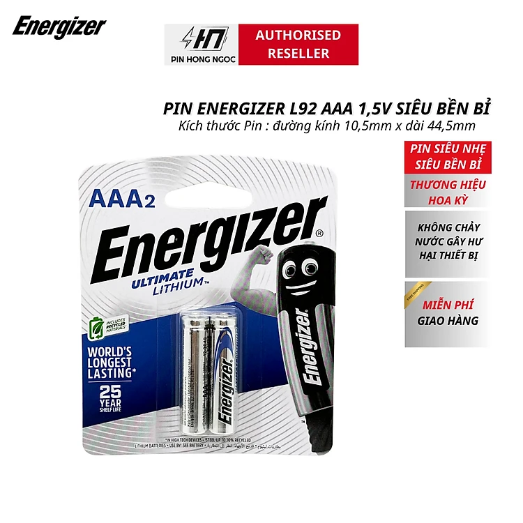 Vỉ 2 Viên Pin AAA Energizer Lithium L92 1,5V Siêu nhẹ , Siêu bền - Hàng chính hãng