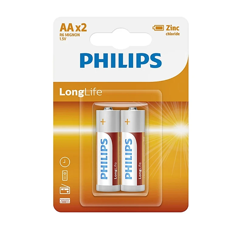 Vỉ 2 Viên Pin Kẽm Philips AA R6L2B - Hàng chính hãng
