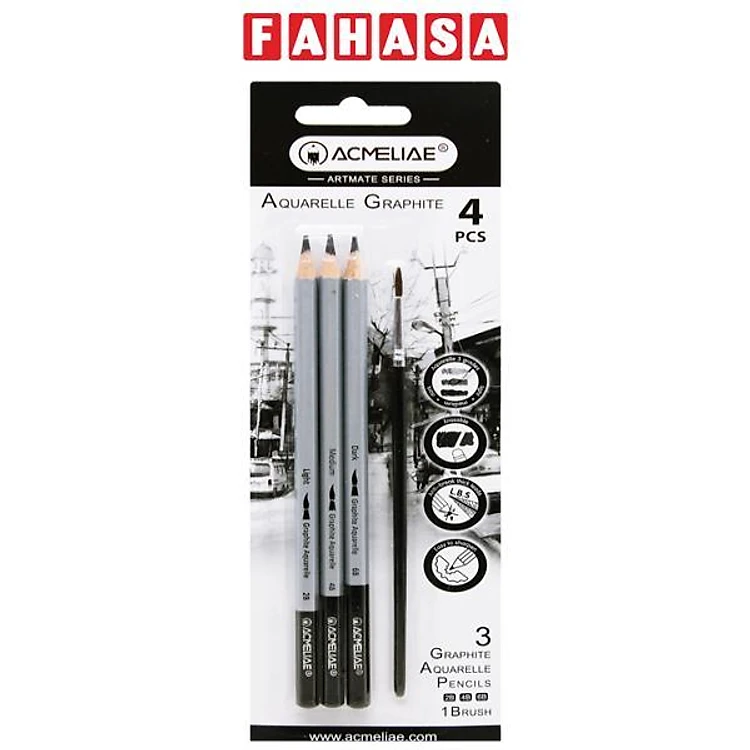 Vỉ 3 Bút Chì Graphite Aquarelle Tan Trong Nước Kèm Cọ - Acmeliae 43706