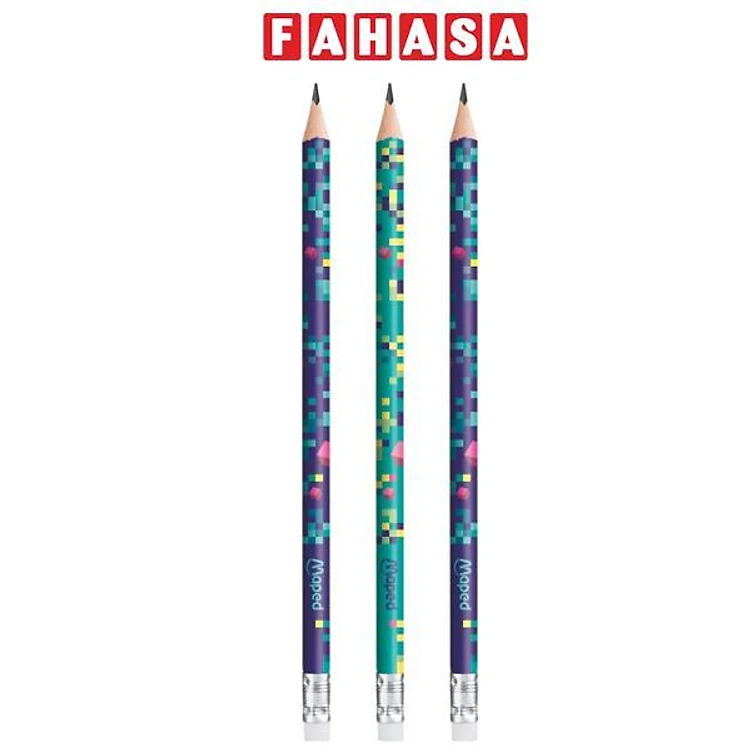 Vỉ 3 Chì Đen HB Kèm Gôm Pixel Party - Maped