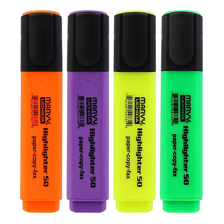 - Vỉ 4 Cây Bút Dạ Quang Marvy 50 - Mẫu 1 - Gồm xanh lá, vàng, tím, cam.