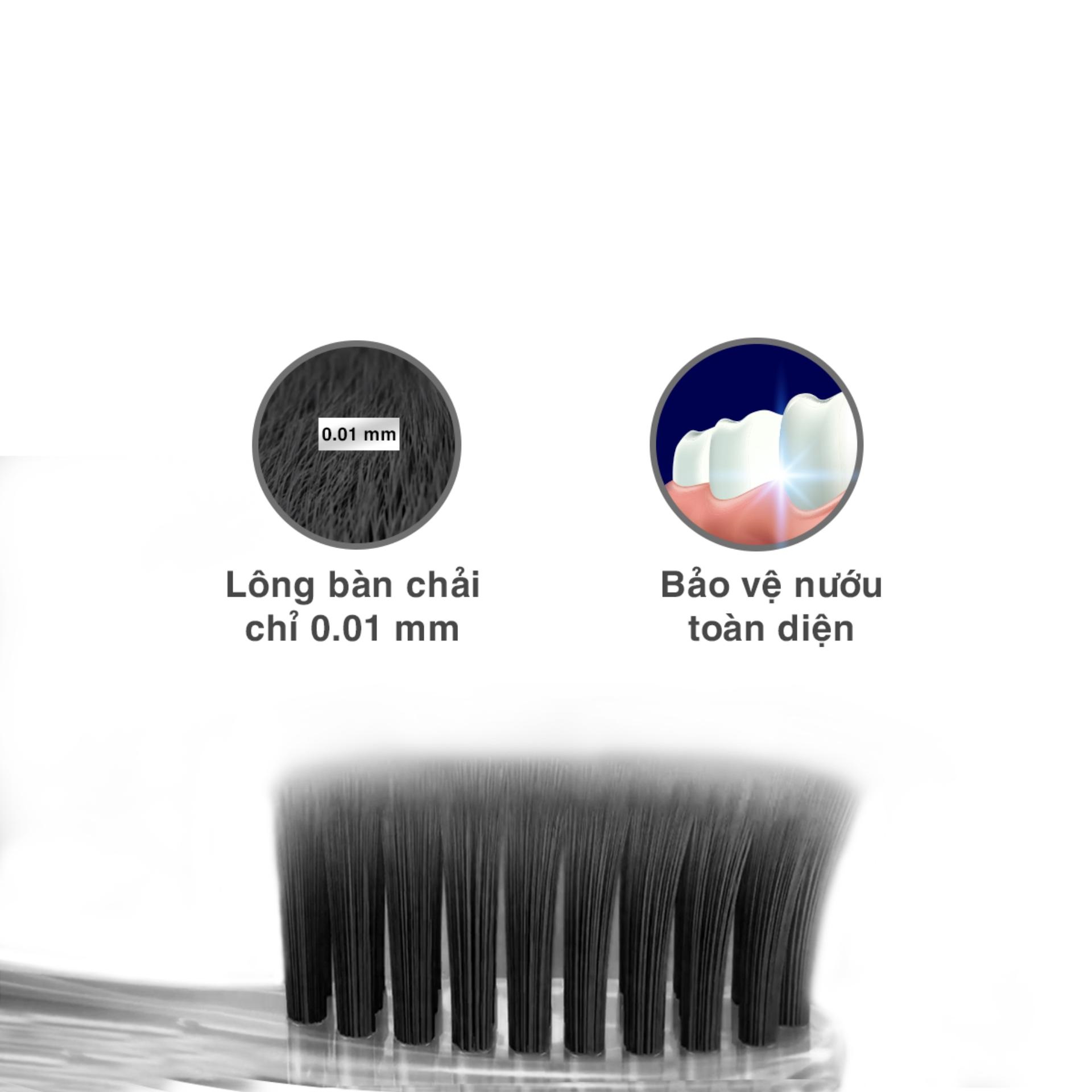 Vỉ 5 Bàn Chải Oral-B Tinh Chất Trà Đen (3 Cây Tặng 2) với thiết kế đầu lông chải siêu mảnh 0.01mm chải sạch sâu, loại bỏ mảng bám và vụn thức ăn trong từng kẽ răng, cho bạn hàm răng chắc khỏe và trắng sáng.