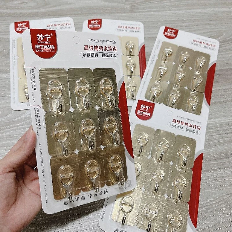 Vỉ 9 móc dán tường chịu lực siêu chắc, móc dán tường đa năng chịu nặng tốt