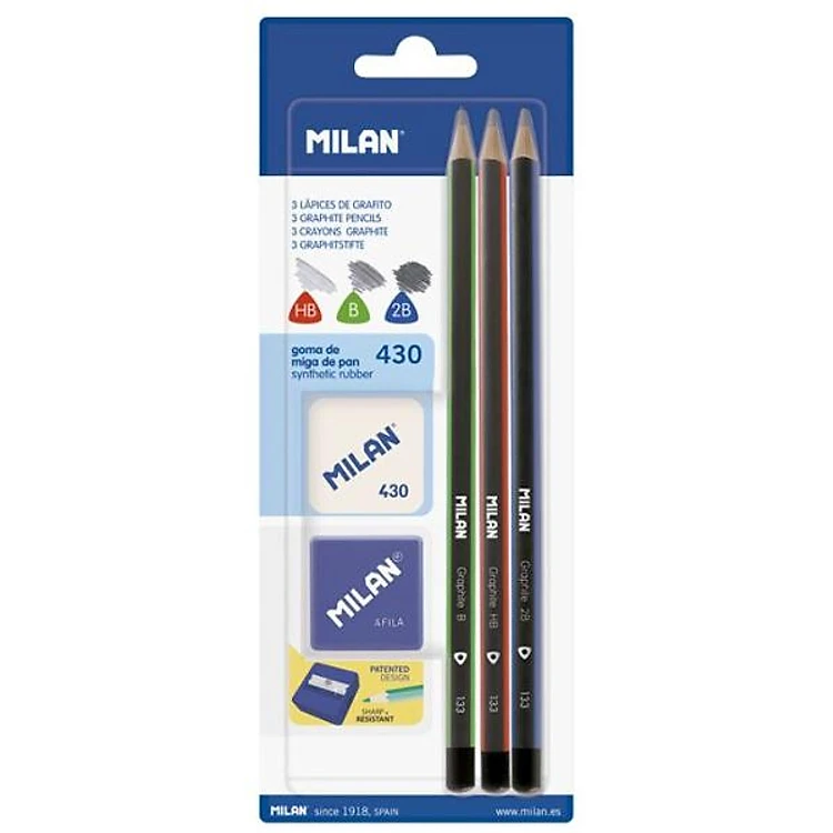 Vỉ Bút Chì + Đồ Chuốt + Gôm Tri Graphite - BYM10290 MILAN