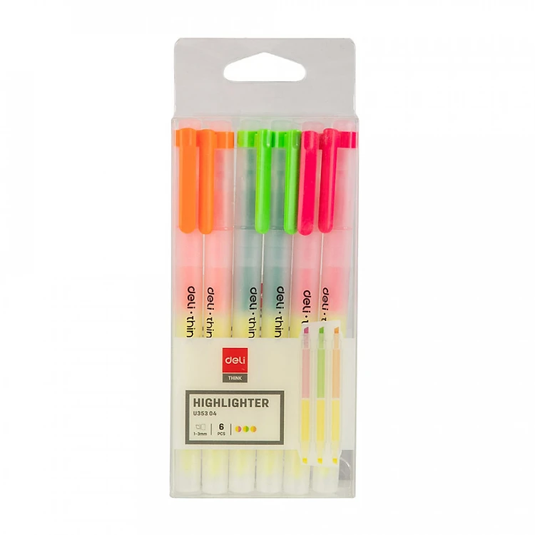 Vỉ Bút Dạ Quang Hai Đầu Deli U35304 giúp bạn làm nổi bật chủ đề muốn nhấn mạnh nhờ màu sắc tươi sáng, bắt mắt. Đây là vật dụng hữu ích của giới sinh viên, học sinh hay văn phòng.