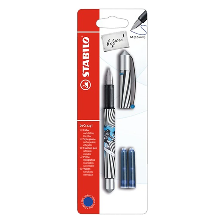 Vỉ Bút Máy Stabilo BeCrazy (B-48820-5) FPC-SNOW - Hình Tuyết sở hữu kiểu dáng tinh tế, hiện đại với màu sắc và họa tiết bắt mắt. Đầu bút chất lượng của Đức, chịu lực, lâu mòn, viết êm trơn hơn bút bi. Chất liệu mực đặc biệt, màu sắc đậm nét, lâu phai. Bút ngòi M, có thể viết được 2 nét với độ nghiêng khác nhau. Đặc biệt, mực có thể được tẩy sạch không tì vết với bút PT88ERC. Sản phẩm bao gồm 1 cây bút máy và 2 ống mực xanh tiện lợi.