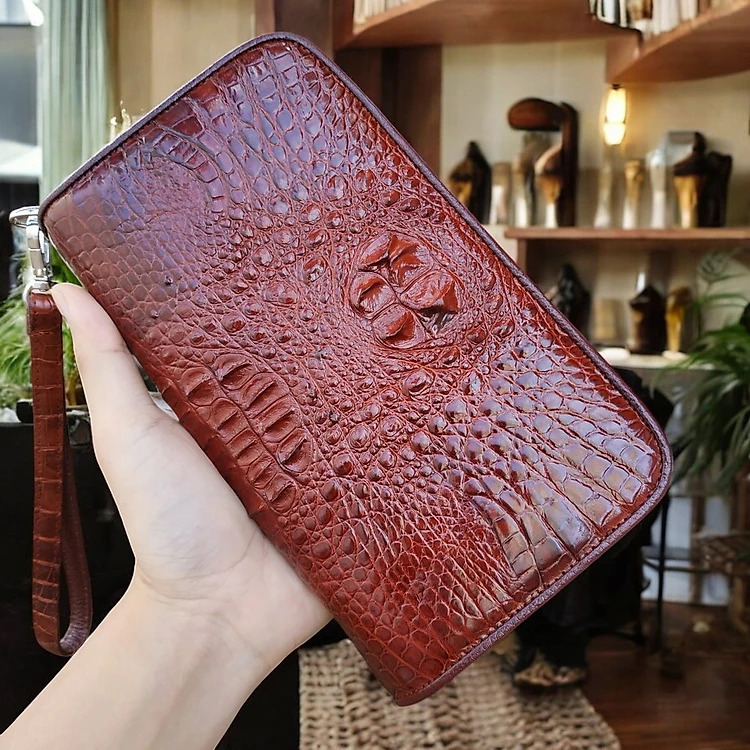 Ví cầm tay da cá sấu 2 dây kéo nam/nữ size lớn 22*12 cm