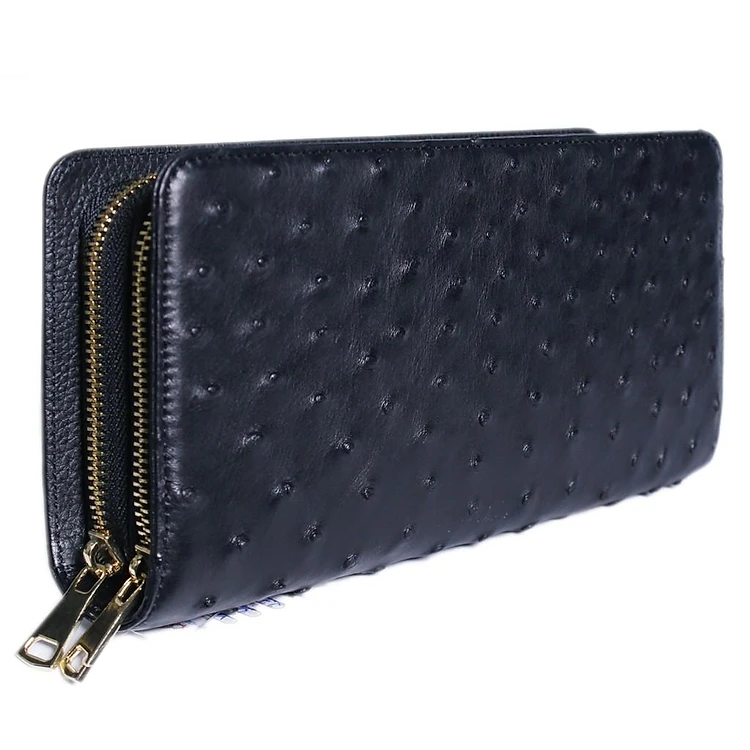 Ví cầm tay da đà điểu Huy Hoàng 2 khóa thụt màu đen - HP3466