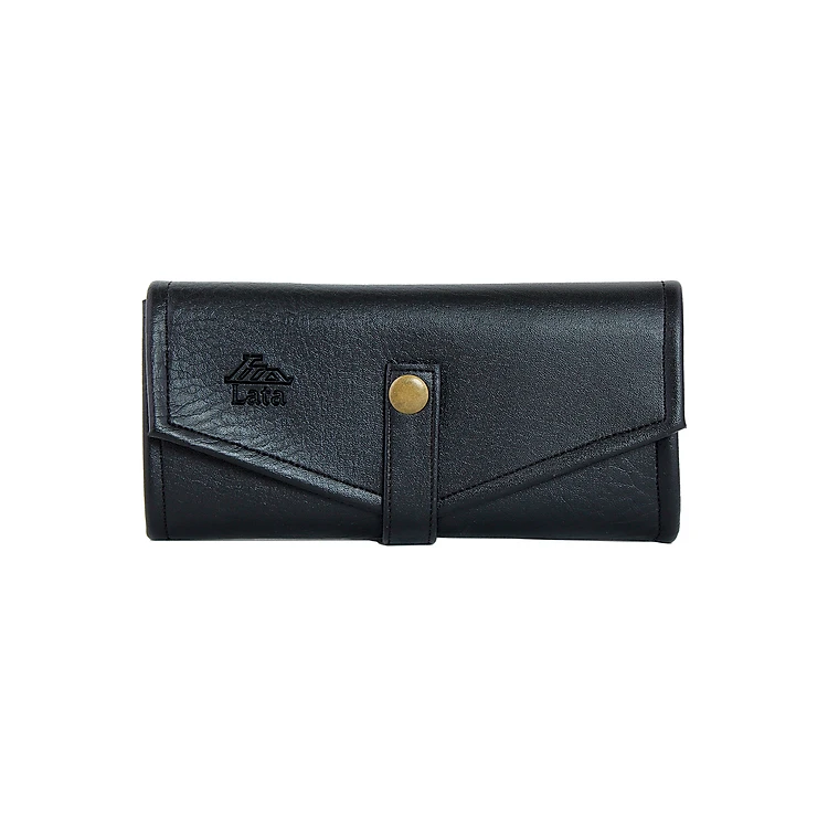 Ví Cầm Tay LATA VN04 có kiểu dáng đẹp mắt, phối nút bấm khá cầu kỳ. Mặt trước cũng được khắc chìm logo thêm nét sang trọng cho sản phẩm. Ví có màu đen chủ đạo cho bạn phong cách mạnh mẽ và cá tính hơn.