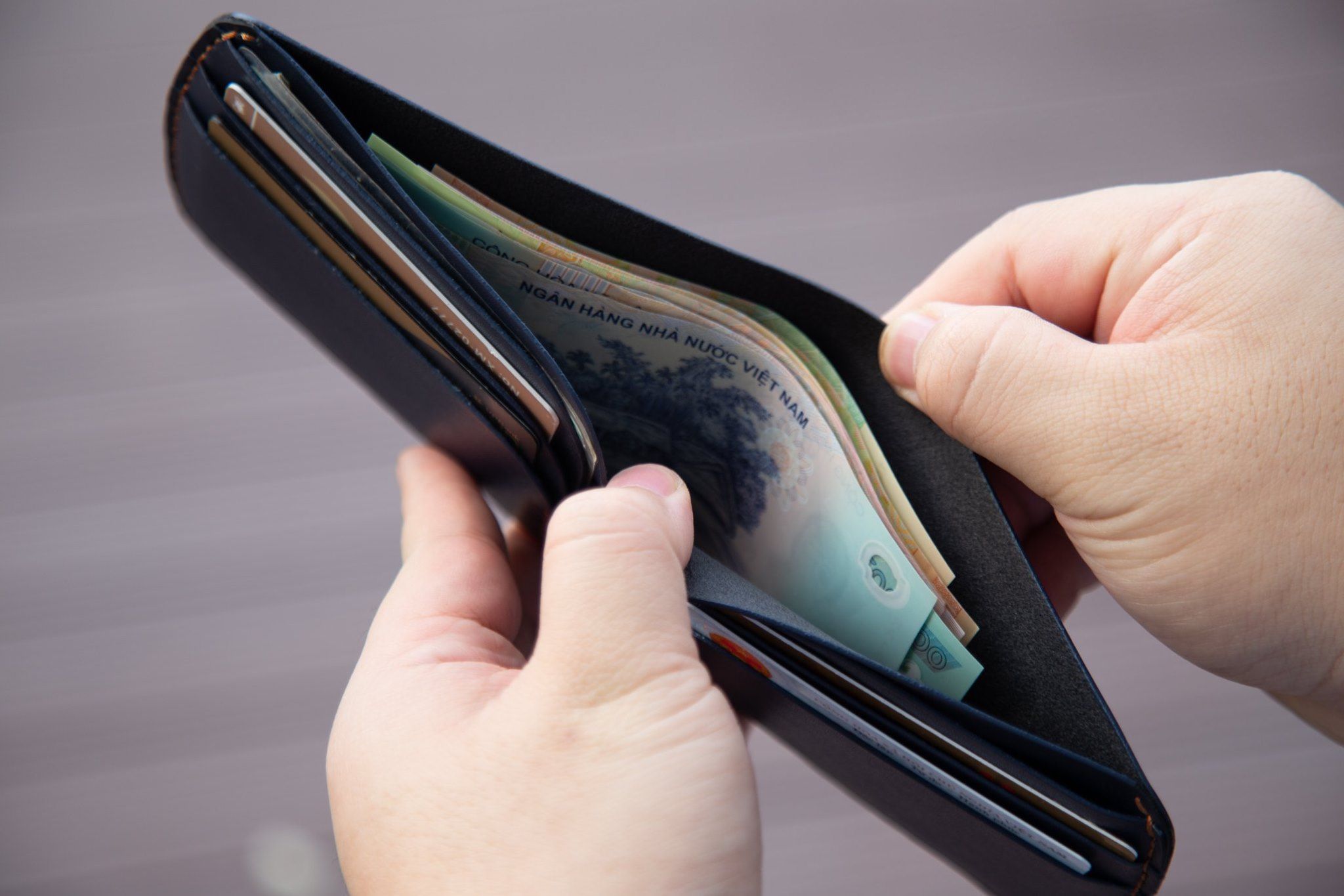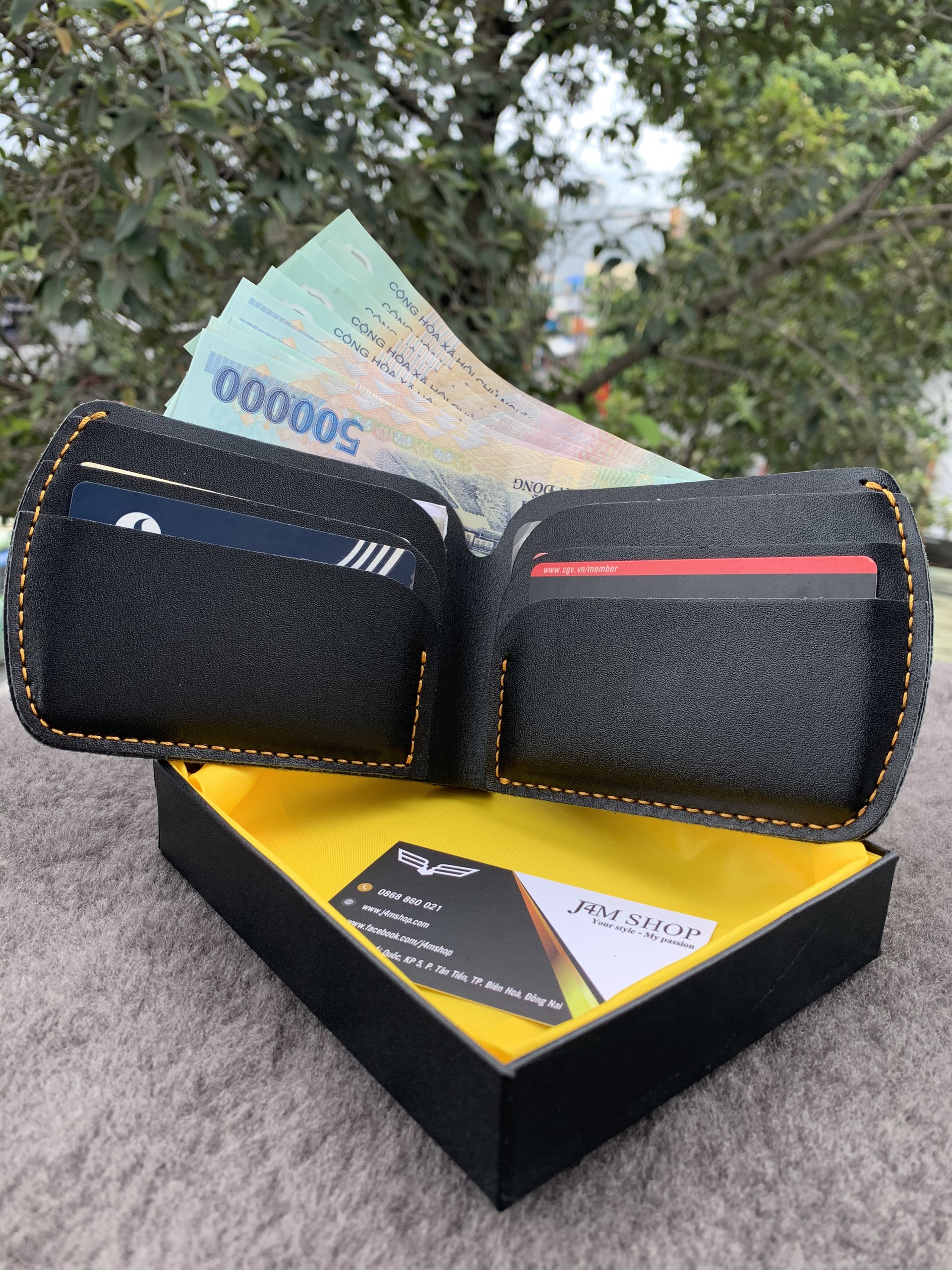 - Gồm 1 ngăn lớn đựng tiền và 6 khe để thẻ ATM, VISA