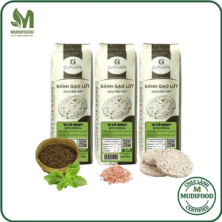 [Vị Cỏ Ngọt] - Bánh Gạo Lứt Ăn Kiêng GUfoods 170g - Thực Phẩm Bổ Sung Dinh Dưỡng Cho Người Tiểu Đường, Người Ăn Chay, Ăn Kiêng, Giảm Cân, Tập Gym, Eat Clean, Hàm Lượng Chất Xơ Cao