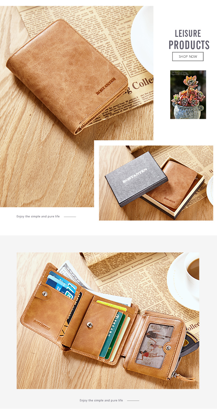 - Ví Da Đa Năng Dành Cho Nam BOSTANTEN với thiết kế nhỏ gọn, lớp da bề mặt được làm từ da bò cao cấp, bên trong là lớp polyester giúp chống thấm tốt.