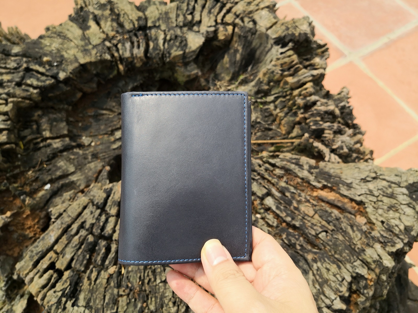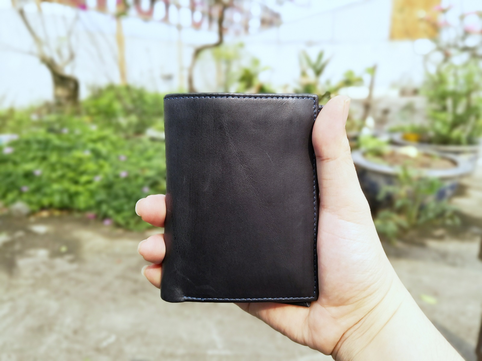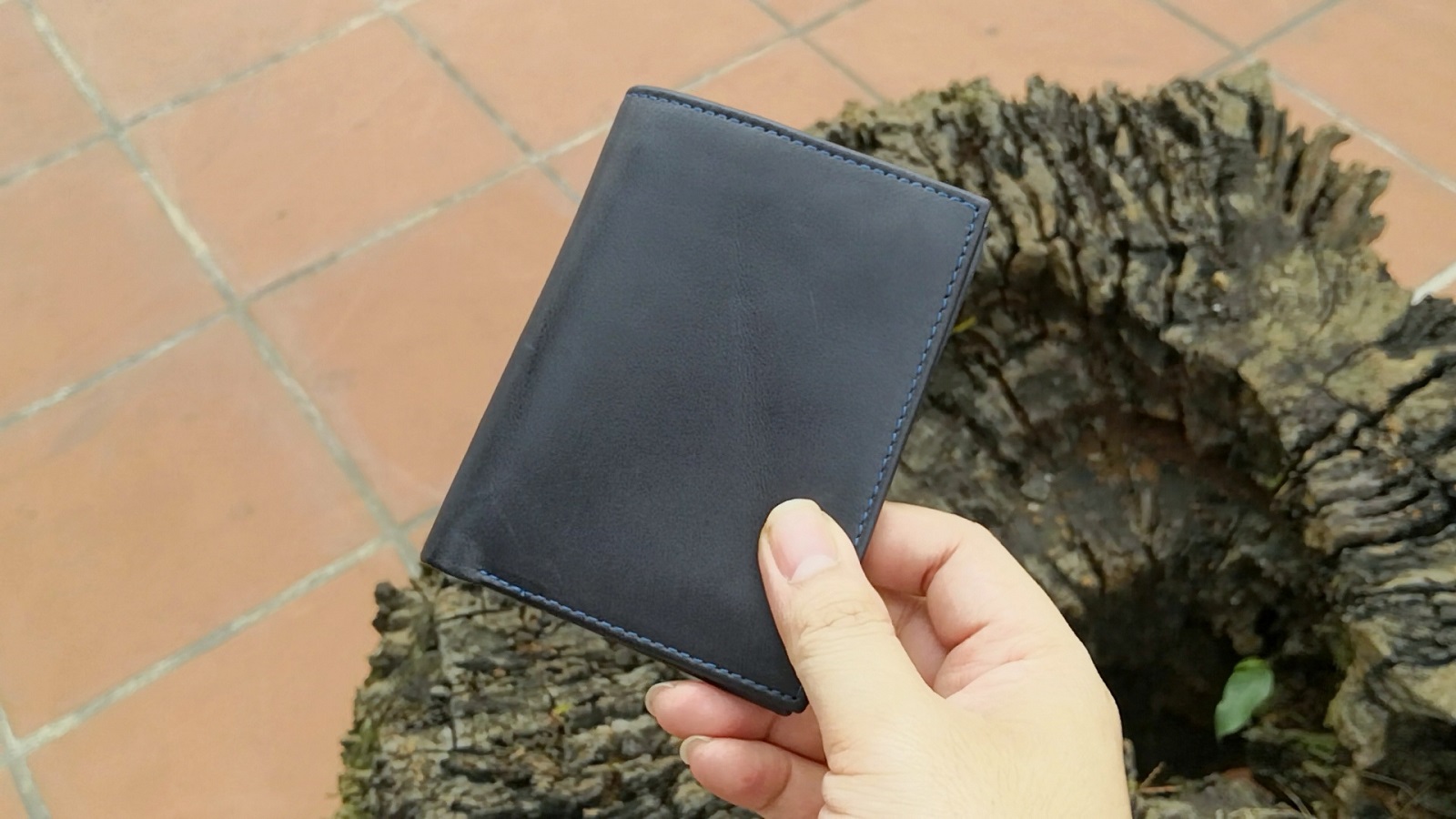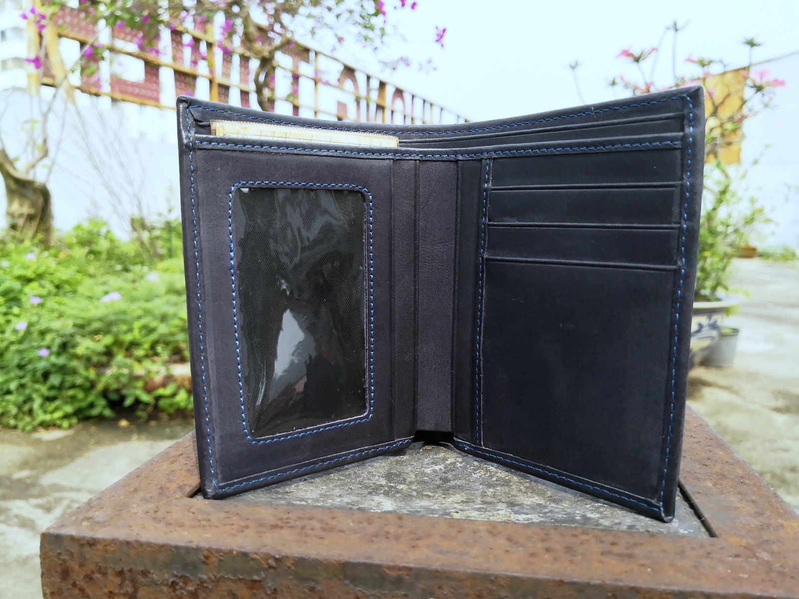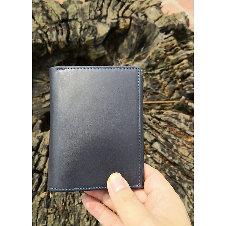 Ví da nam da bò mẫu ví đứng cao cấp dáng nhỏ gọn chất da sáp mầu xanh đen VC9