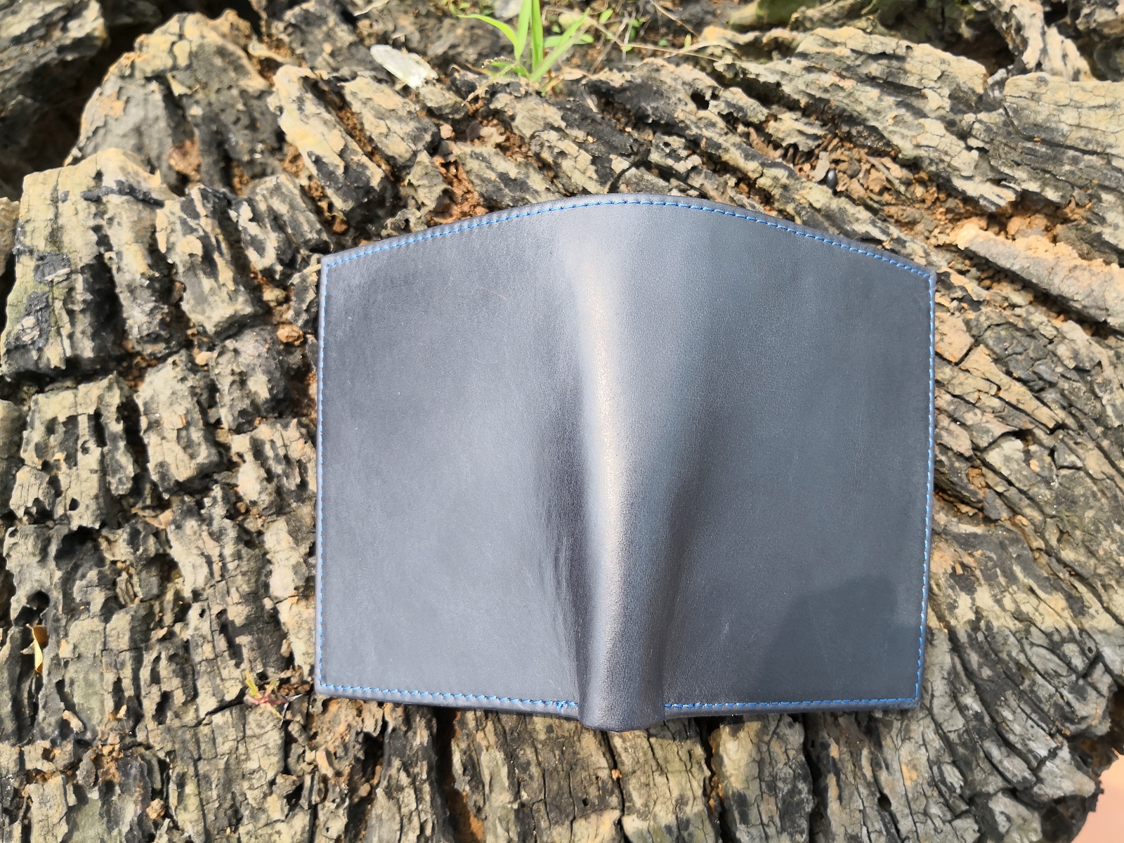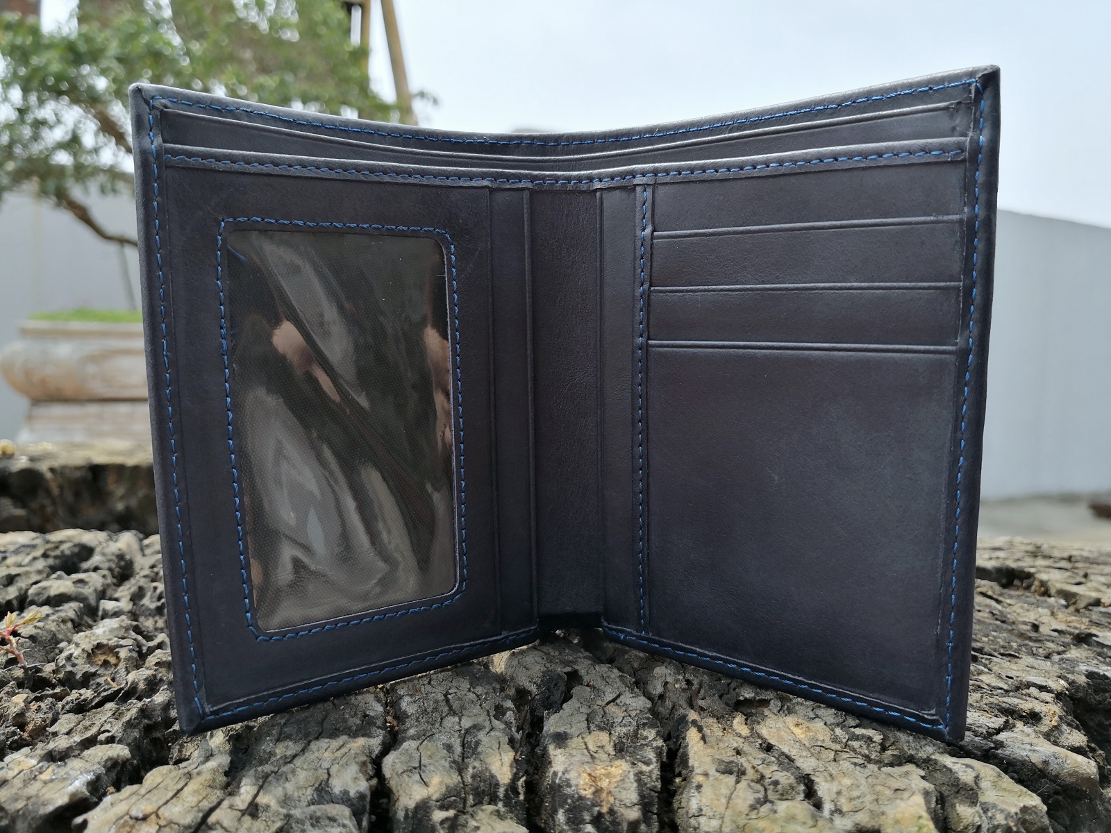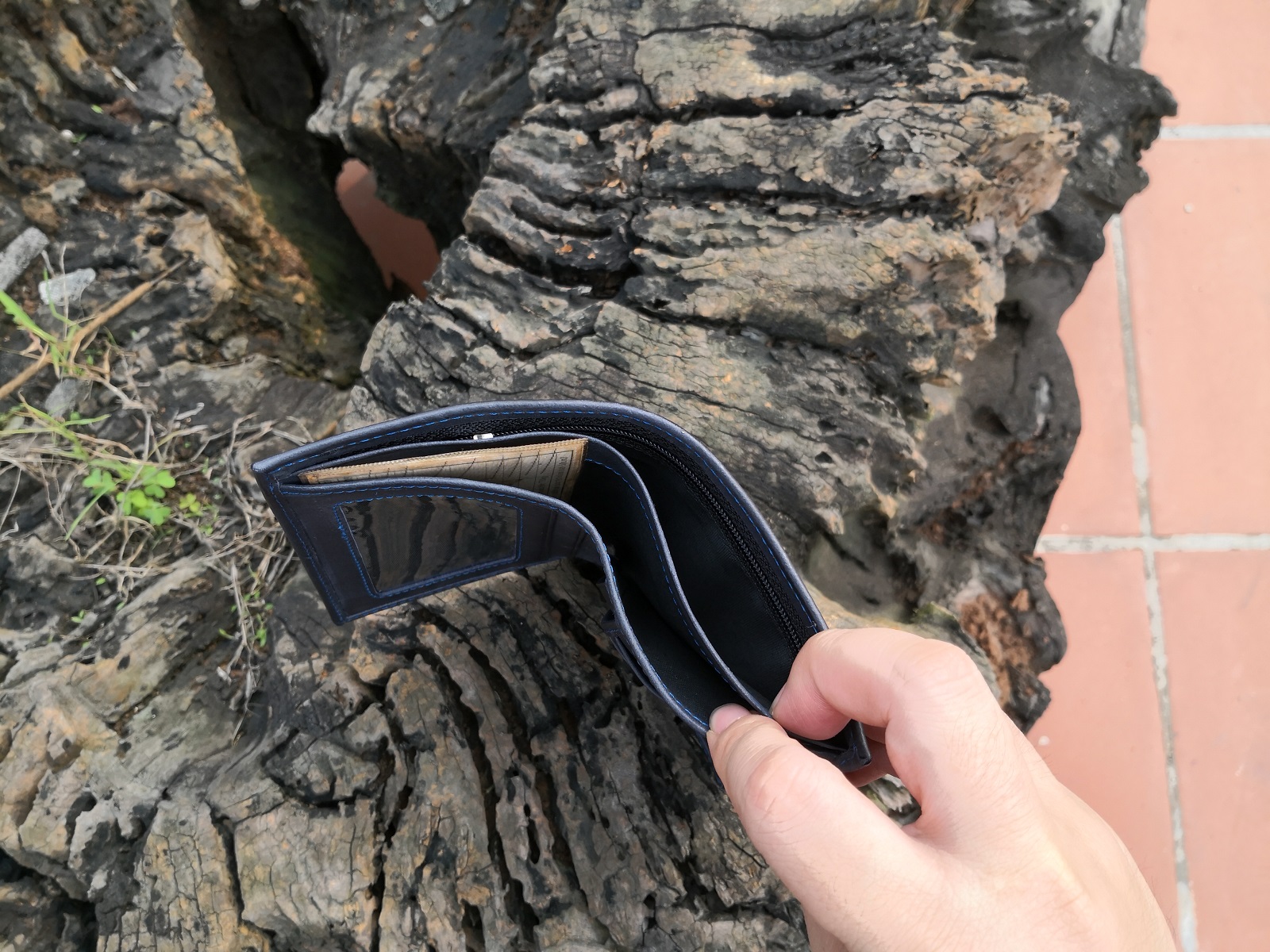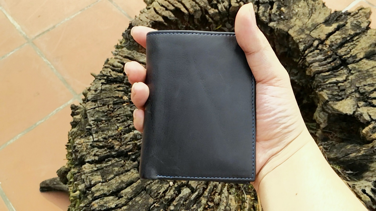 Ví da nam da bò mẫu ví đứng cao cấp dáng nhỏ gọn chất da sáp mầu xanh đen VC9